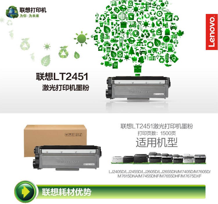 聯(lián)想/LENOVO LT2451粉盒 原裝粉盒 適用于M7400PRO 7605D打印機(jī) 約1500頁